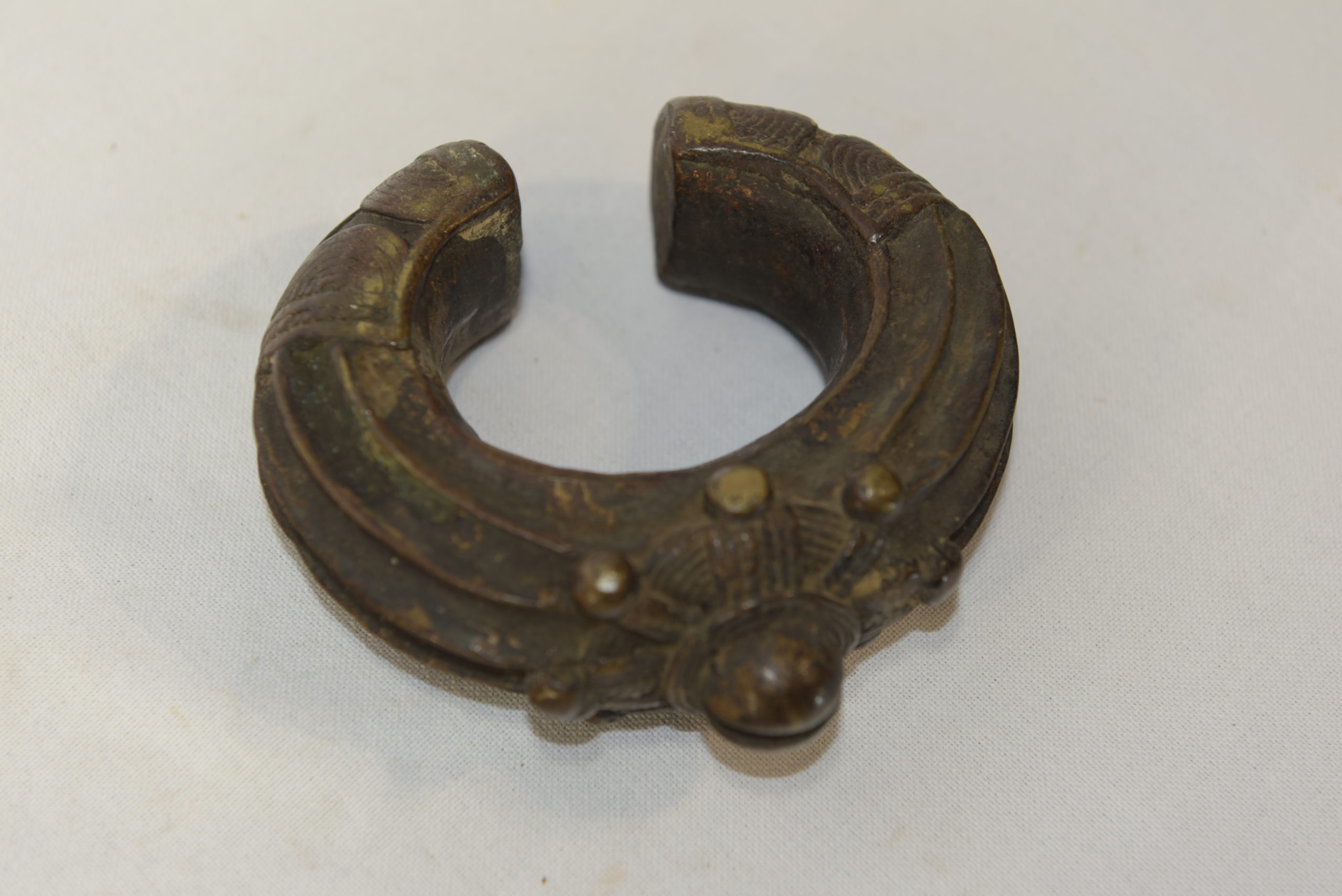 Une Manille bracelet de cheville lourde du Mali, en alliage de cuivre, probablement des peuples Dogon Afrique de l'Ouest.